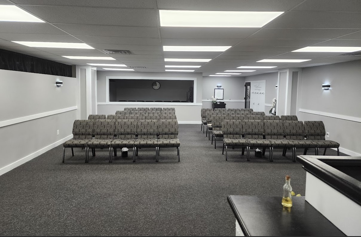 We moved Pastor’s office to create space for 30 more chairs in the back of the sanctuary. Pastor opened the wall up so that more people could join us for our meeting. God helped Pastor’s wife to re-upholster 40 additional chairs. Then she remove the pastic bottoms of the original 30 chairs and replaced with wood to better secure the seats. Under every single seat is a scripture from the BIBLE that has helped us all with praise, worship, repentance, baptism, how to be a true christian along our journey to make Heaven our home. We got new tissue boxes that were plain wood that got designed to match the sanctuary. Pastor and his wife, like Solomon who asked for wisdom instead of asking for wealth have used it to improve the church. God has blessed our church abundantly. God always provides when the church is in need. You truly cannot outgive God. If you put God first there is nothing that you will not be able to do if it is his will in such a time as this. To God be all of the Glory!!!! We are overly Thankful for our church and the people that join us in services.
